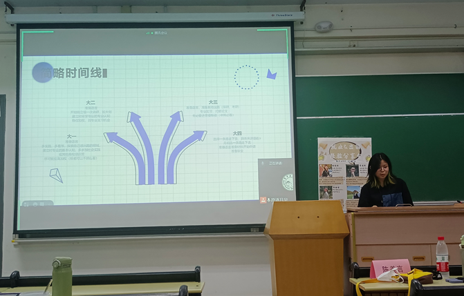 陈美言同学首先分享了自己申请出国留学的经验。在留学准备材料上,她认为要准备本科成绩单、在读证明与推荐信、语言成绩和个性化材料(简历、个人陈述)等,她以自己的简历为例向大家讲述了简历具体该如何写。然后她梳理了留学准备的时间线,并强调了必要准备阶段,包括语言考试、网上申请系统、选择offer、出国准备这四点。最后她还说明了学习之外的留学准备包括安全问题、资金问题等。